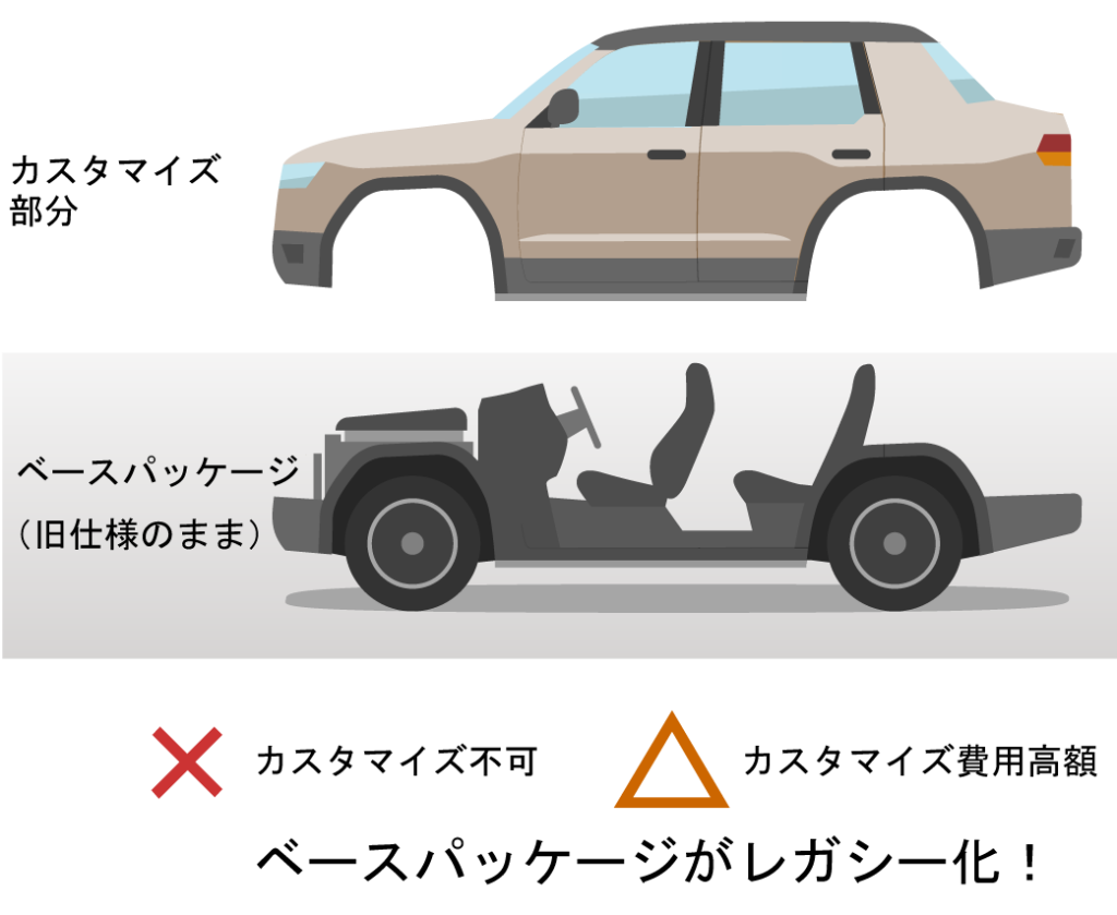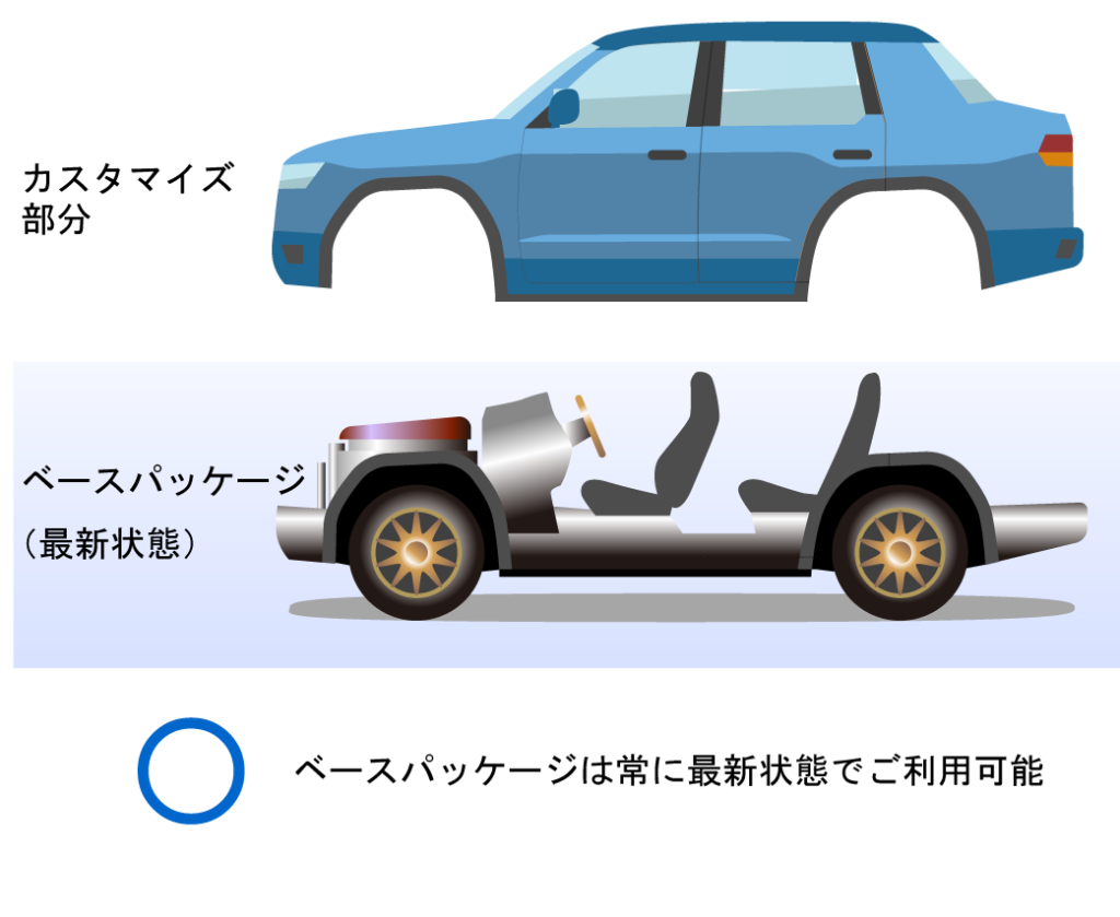 ベースパッケージ自体をカスタマイズしてしまうと、元のベースパッケージの標準バージョンアップの対応が難しくなってしまったり、大改修が必要になるため、大幅な追加費用がかかる可能性もあります。